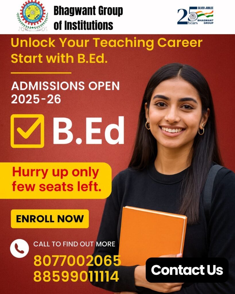 सभी छात्र-छात्राओं को सूचित किया जाता है कि B.P.Ed. (सत्र 2025–27) में प्रवेश हेतु शारीरिक दक्षता परीक्षा (Physical Fitness Test) दिनांक 3 सितम्बर 2025 को SD College, मुज़फ्फरनगर में आयोजित की जाएगी।